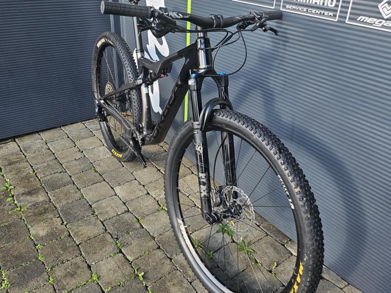 Suspensions Fox : fourche Fox 34 Float SC Performance 120 mm (Grip, Remote Push-to-Lock, axe QR15x110) et amortisseur Fox Float SL Performance 120 mm (Remote Push-to-Lock, EVOL, réglage spécifique, 190x45 mm).